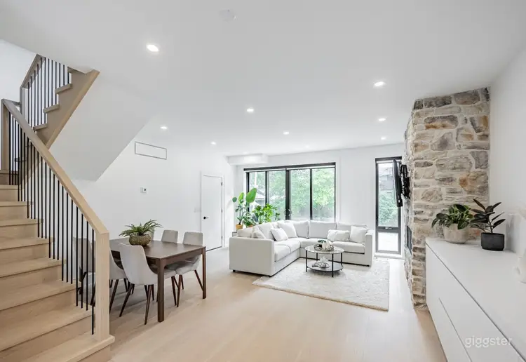 Step into cinematic elegance with this newly built, contemporary 3-story home, boasting a striking white facade with black trim, modern architecture, and ample natural light. The exterior features dramatic curb appeal, a multi-level layout, and a clean backdrop perfect for establishing shots or dynamic entrances. 🖼️ Interior Highlights: Open-concept main floor with sleek white walls, warm wooden floors, and high ceilings Designer kitchen with matte black appliances, white cabinetry, and a quartz waterfall island — perfect for cooking scenes or product shoots Chic living room with a stone accent fireplace, modern furnishings, and large windows that pour in natural light Elegant bathrooms with floating vanities, rainfall showers, and standalone soaking tubs — ideal for wellness or luxury shoots Three spacious bedrooms styled with neutral tones and modern décor, offering a clean, adaptable canvas for filming Modern staircases and clean lines throughout that add architectural interest in every frame 🎥 Ideal For: TV and film productions Real estate and interior design shoots High-end fashion editorials Kitchen and home appliance commercials Wellness, spa, or lifestyle brands 🌲 Surrounded by trees and built into a gentle slope, this home combines urban sophistication with a touch of nature’s calm. The layout offers multiple perspectives, from cozy corners to dramatic wide angles. 🔌 Ample space for lighting, crew, and equipment setup. On-site parking available.